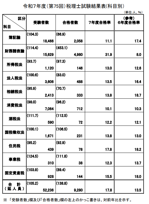 令和7年度(2025年)第75回 税理士試験 試験結果
